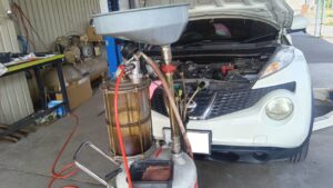 日産 ジューク エンジンオイル交換 2025年9月9日 | コメントはまだありません ジュークのオイル交換のご依頼です。 今回はオイルのみの交換ですので上抜きで作業が可能。 オイルが抜けたら新しいエンジンオイルを入れて量を確認して作業終了です。 Posted by H.shirane オイル交換・ケミカル用品, 作業実績, 整備・修理・塗装・板金
