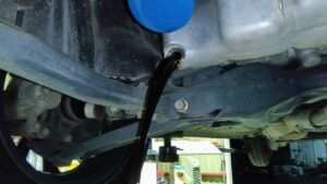 リフトアップしてエンジンオイルを抜きます。