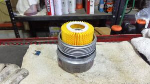 オイルフィルターは中身のろ紙部分のみ交換するタイプ。