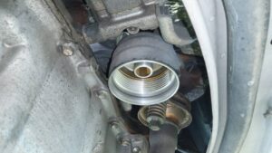 オイルエレメントも交換しますので、リフトアップしてフィルターを外します。