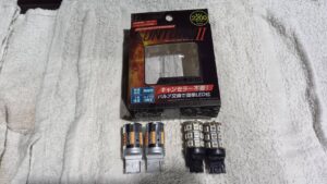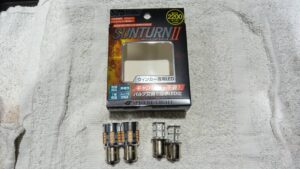 前後のウインカーバルブを新品のLEDバルブへと交換しました。