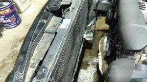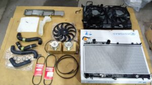 新品ラジエーターに新品ファンモーター等を組み付けます。