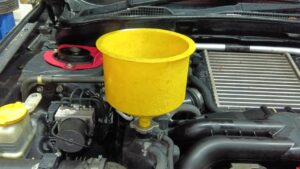 少し抜けたATFを補充して、新しいLLCを入れてエア抜きします。