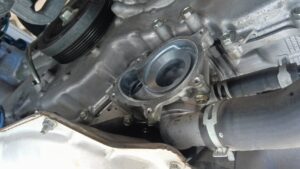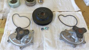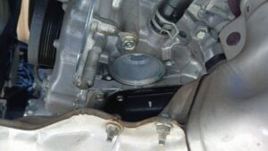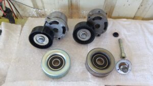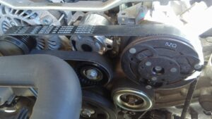 ウォーターポンプを取り付けて、テンショナー、アイドラを取り付けてベルトを張ります。