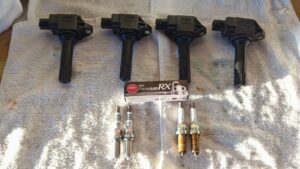 インテークダクトが外れているところでスパークプラグとイグニッションコイルを交換します。