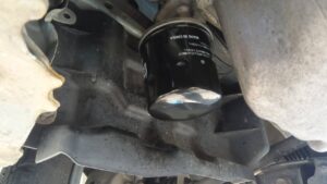 オイルエレメントも交換しますのでリフトアップして作業です。
