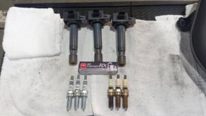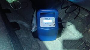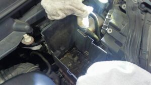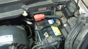 交換した日付と走行距離を記入して新品バッテリーを取り付けます。