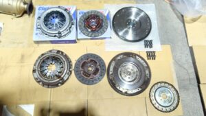 クラッチカバー、ディスク、フライホイールと新品にします。