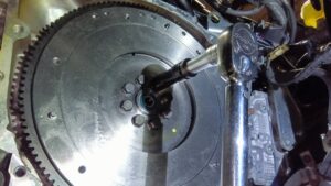 新品のフライホイールを取り付けます。