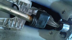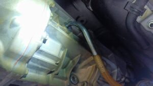 確認しているとミッションの辺りから音がします。