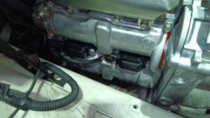 ここもオイルが漏れて溜まっている状況。