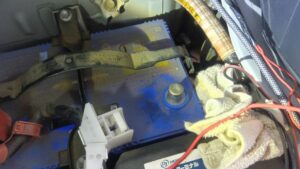 電気系の作業ですので、バッテリーのマイナス端子を外してから作業開始です。