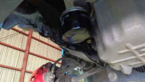 新品のオイルエレメントを取り付けて新しいエンジンオイルを入れます。