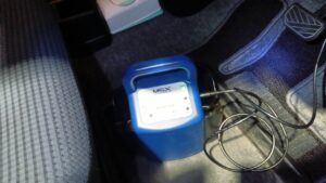 新品バッテリーに交換時の日付、走行距離を記入して取り付けます。