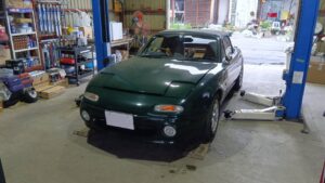 ユーノスロードスターのマフラー交換です。