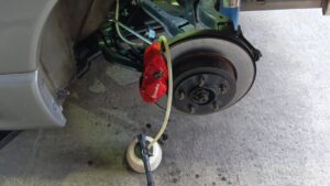 左右共に新品のブレーキパイプへ交換したら、エア抜きをします。